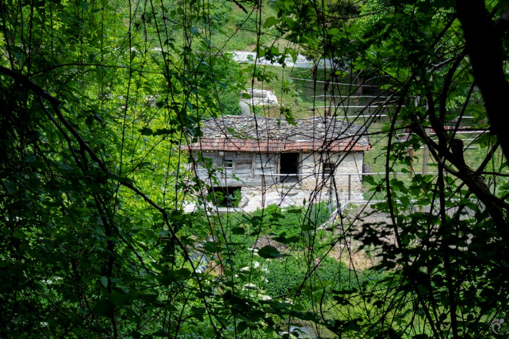 След разходката между скалните грамади идва един момент, в който те изчезват и маршрутът навлиза в гориста местност. Ние продължихме до табела, която разказва за караджейките – реселешките воденици, от която завихме вляво. Вървейки по пътеката, достигнахме брега на реката, където на отсрещния бряг видяхме една от караджейките – Банковската воденица.
