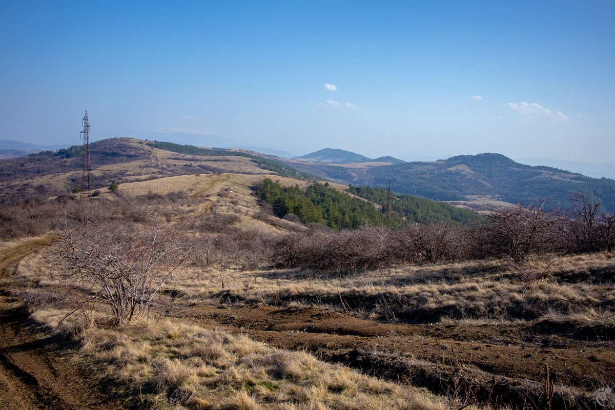 - Маршрутът преминава основно през ниска растителност – треви и храсти и при ясно време (каквото за съжаление ние не уцелихме 😦 ) се разкриват красиви панорами от пътеката към местността наоколо.
